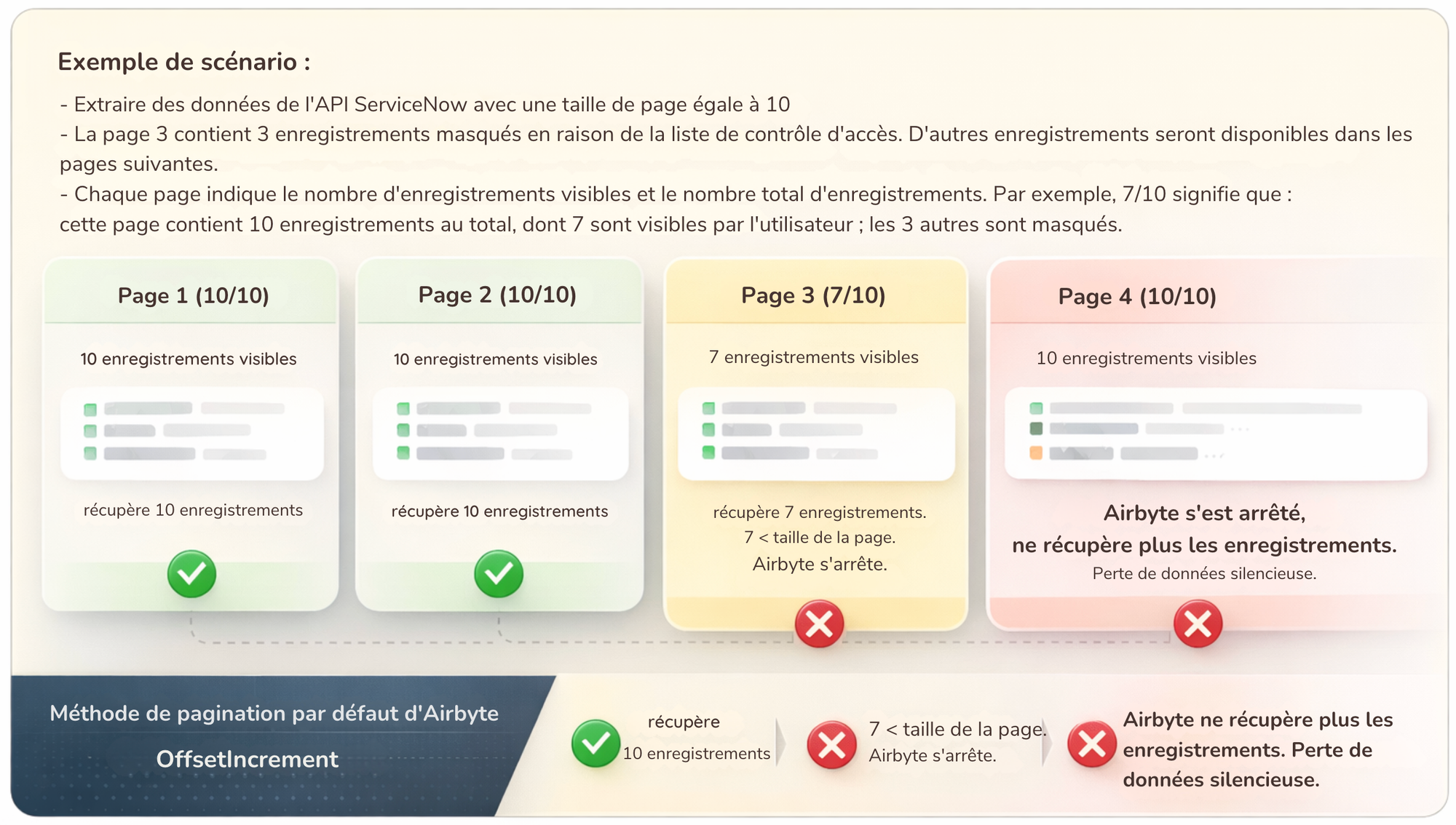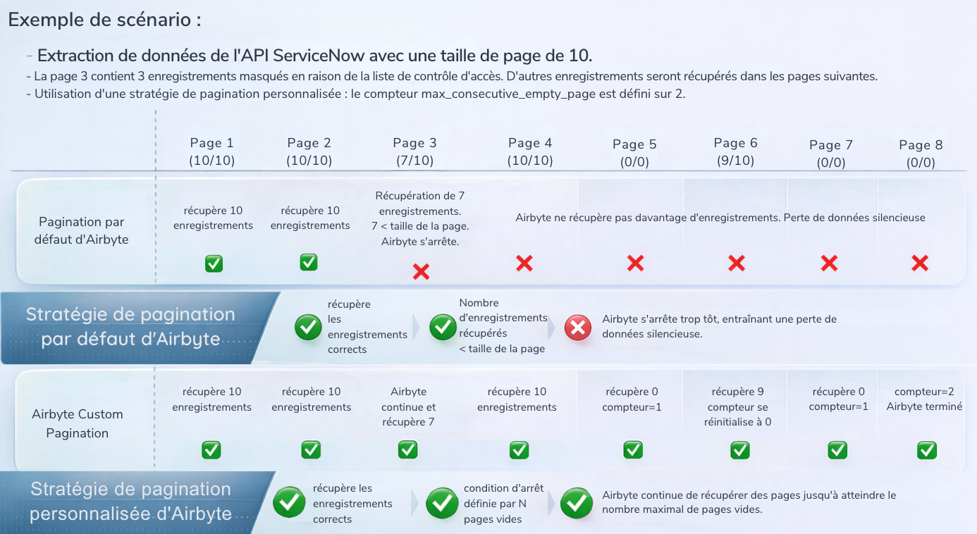 une page « incomplète » (7 au lieu de 10), qu’Airbyte interprète comme une fin de données.